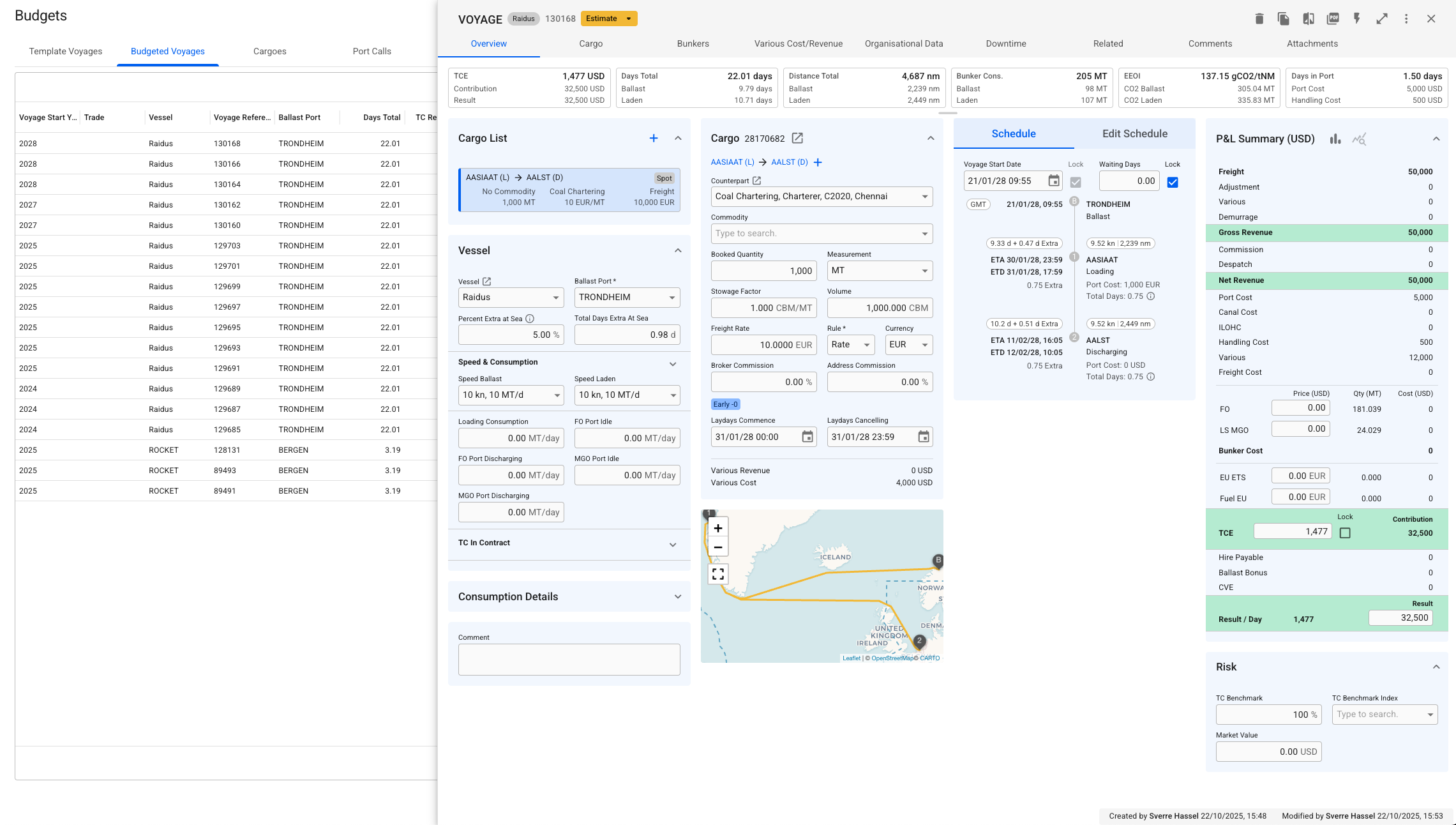 <figure><img src="https://content.gitbook.com/content/WoySkL2wtBxvxqGI8yWa/blobs/nXrrYNDejyFDZt7d36ot/image.png" alt=""><figcaption><p>Voyage drawer from Budgeted Voyages grid view</p></figcaption></figure>