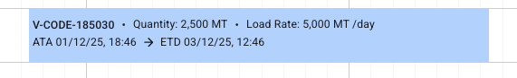 On each port call bar, you will find the following information: