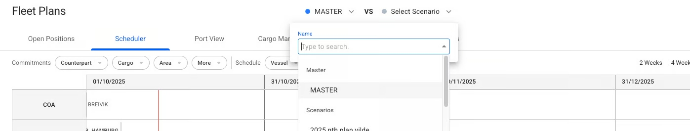 The Fleet Plans module allows you to allocate voyages and cargoes in MASTER and different scenarios, without actually making any changes to your MASTER Fleet Plan.