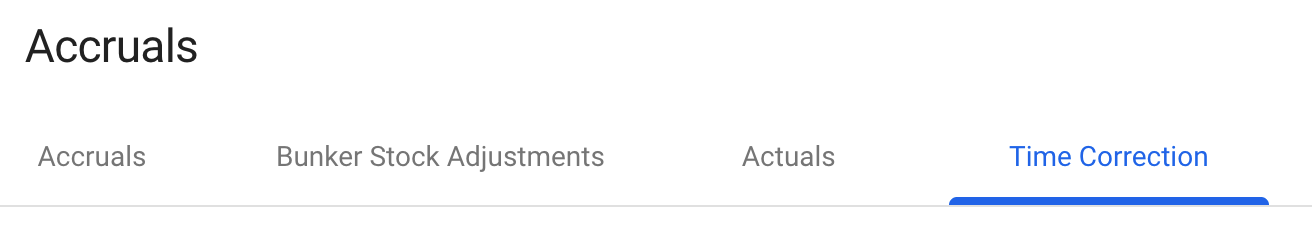 Contains Accruals list, Bunker Stock Adjustment list, Actuals list and Time Correction list