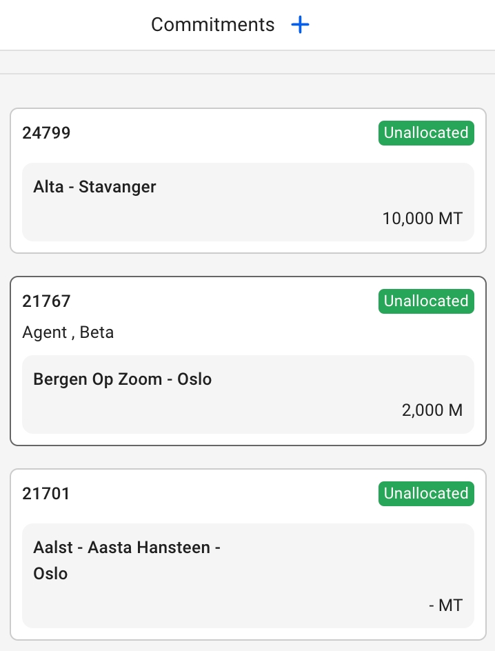 The board has two main areas- unallocated voyages (Commitments) on the left, and allocated voyages on the right.