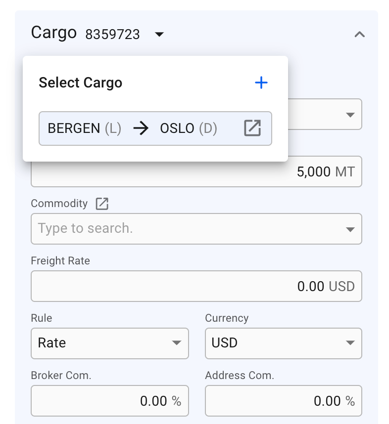 The Cargo section lets you make changes to the most important data on your cargo. Use the Cargo selector button to switch between multiple cargos.