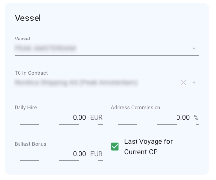 In the voyage drawer at the vessel section you will find a checkbox for setting "Last Voyage for Current CP". This checkbox is disabled when there is no TC In Contract registered.