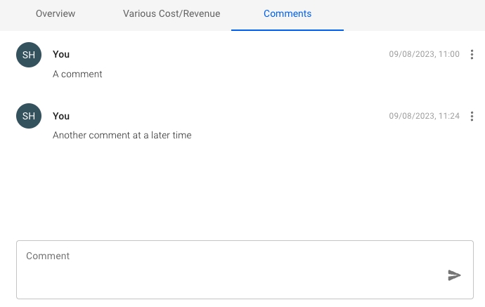 The Comments tab allows multiple users to add multiple comments, in a chat-like manner.