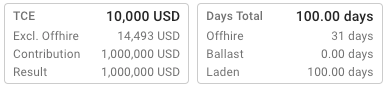 TCE Excluding Offhire (only shown when there is at least one offhire day)