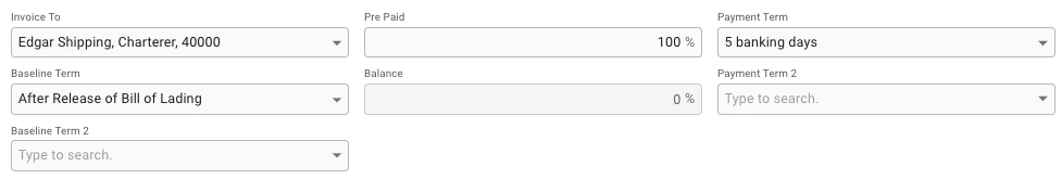 Changing vessel in this section will change the voyage's and the connected cargoes' company and business unit to the selected vessel's.