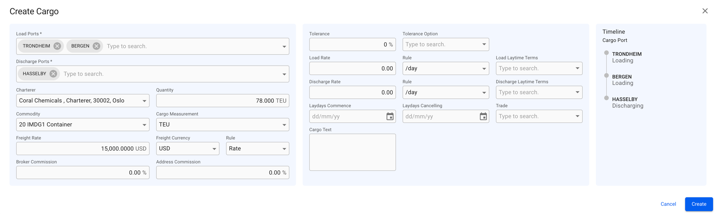 To see the new Create Cargo and Create Cargo Port modals for allocated cargoes, click here: Cargo Actions!