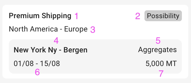 By hovering over a cargo card or on a port call row, a tooltip can be viewed. Fields in the tooltip that contain no data are hidden: