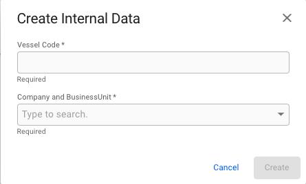 For new vessels or vessels without commenced voyages, open the action menuin the top right and choose "Create Internal Data" as indicated below.
