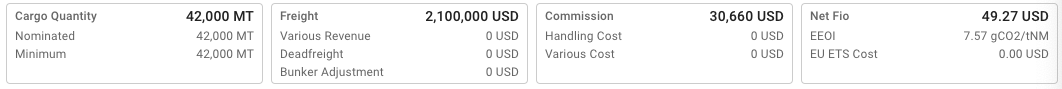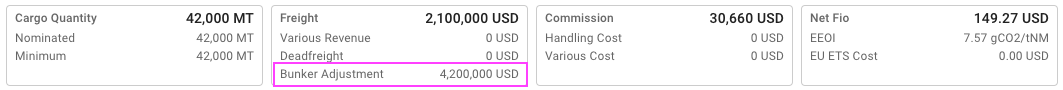 This calculation you can see as the price value in the second KPI tile by the last field called Bunker Adjustment:
