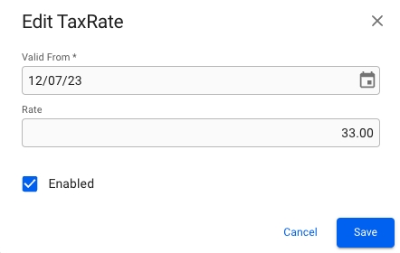 If you uncheck the Enabled checkbox, the tax rate will get the status Disabled on the list.