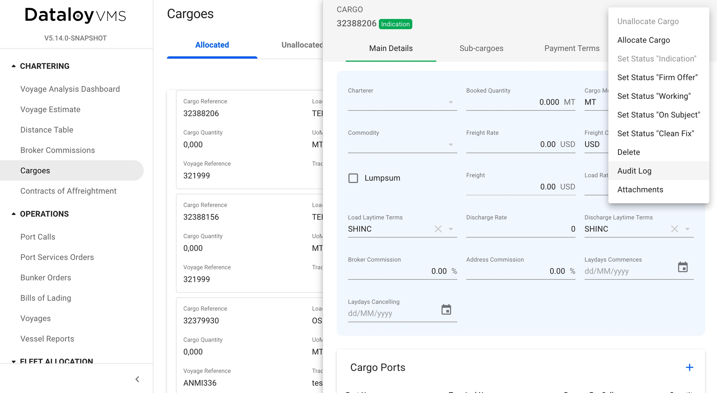 When a filter is selected the filter field will show the name of the selected filter, i.e Cargo in the example above.