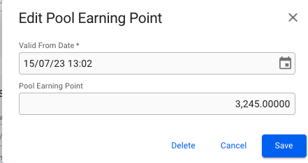 Create/edit modal for Pool Earning Point.