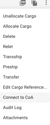 If you click the Connect to CoA button in the secondary actions menu on in a Cargo Drawer,