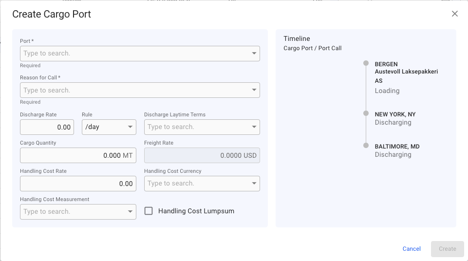 Editing a Cargo Port will give you access to a few more fields, for instance Handling Cost, Laytime Terms and related fields.