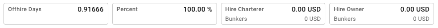 If the offhire period in on a time-charter-in voyage, the second table will show the owner's bunker consumption. Otherwise it will show the opex's bunker consumption.