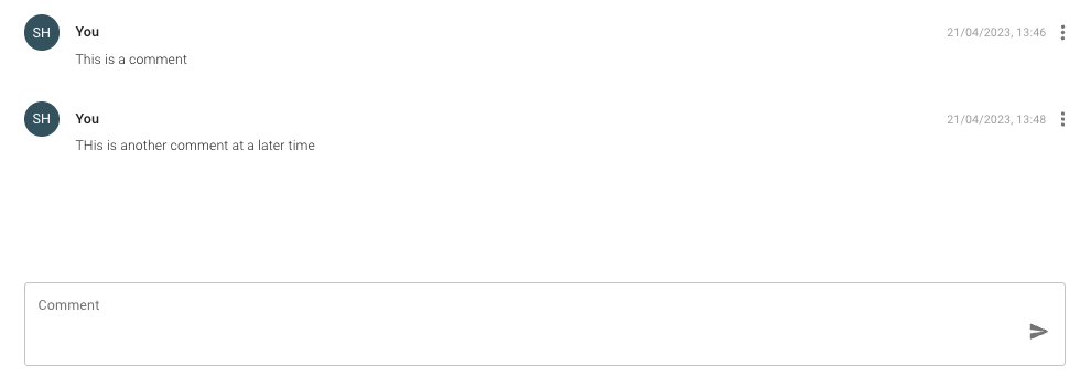 In the comments tab there is a list of previous comments made, and at the bottom you can add new comments.