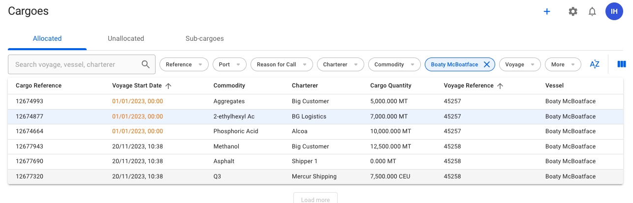 The Cargoes page is designed to be able to show the history of cargoes by setting filters and customising columns to your needs.