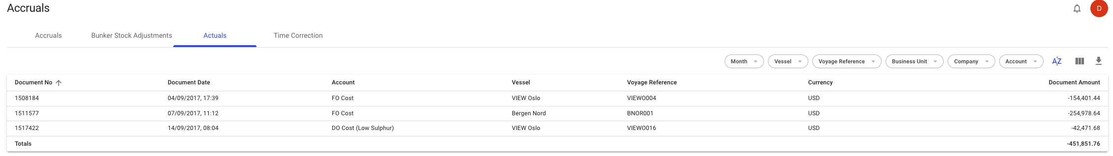 <figure><img src="https://content.gitbook.com/content/fLo3TET6I0ciwlEnxXgZ/blobs/yuooK2RWi4h66VmODH4t/image.png" alt=""><figcaption><p>Example of Actuals List</p></figcaption></figure>