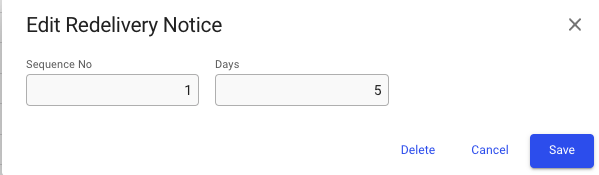 <figure><img src="https://content.gitbook.com/content/bpRXlpuknwnd2ADVp6vn/blobs/vVf3z00m9FRVAYVSsM0J/image.png" alt=""><figcaption><p>Edit Redelivery Notice modal with delete button</p></figcaption></figure>