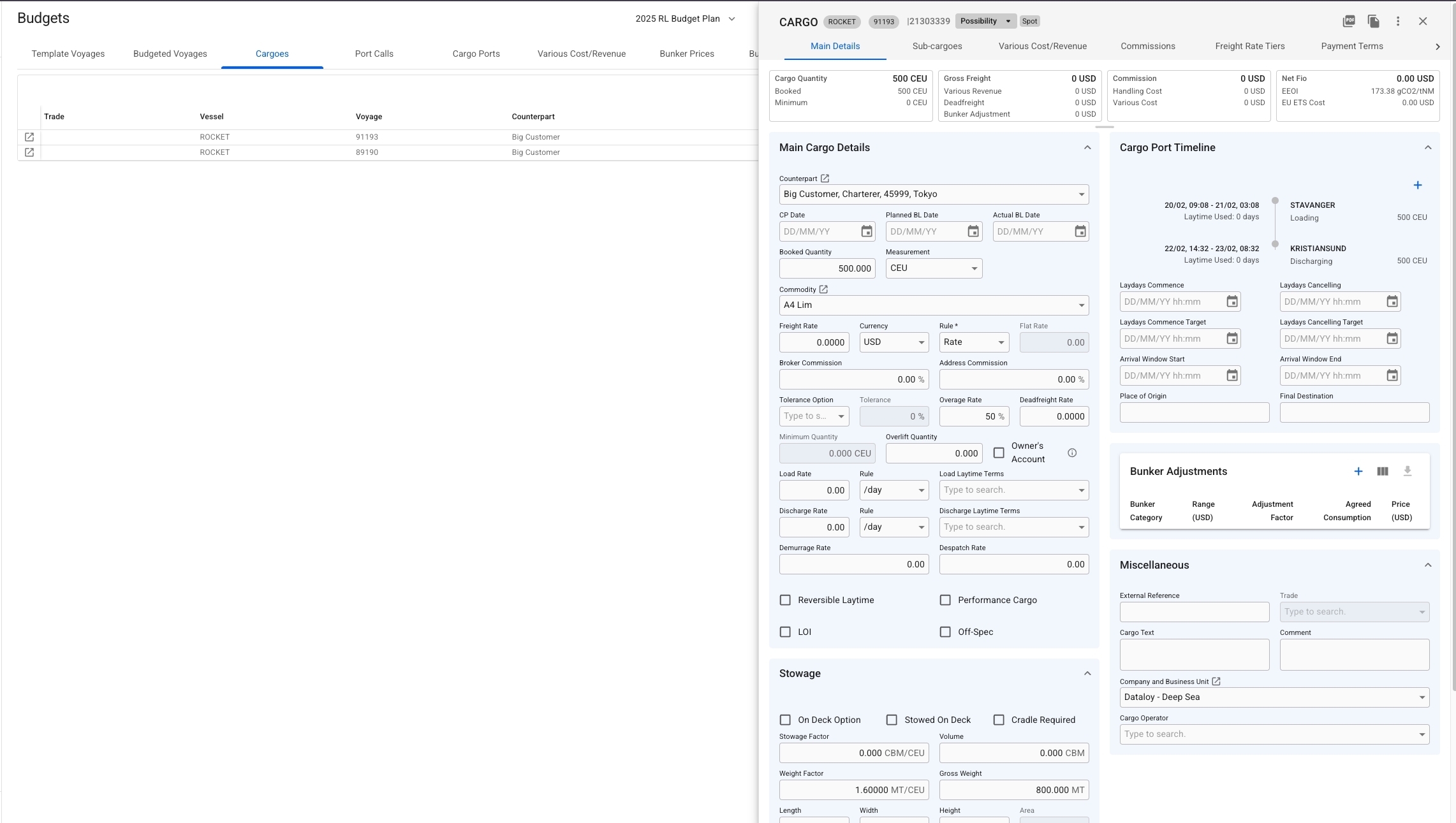 -icon in the left-most column, you will be able to open up the Cargo drawer for that specific row. From the below view, you can edit the selected cargo: