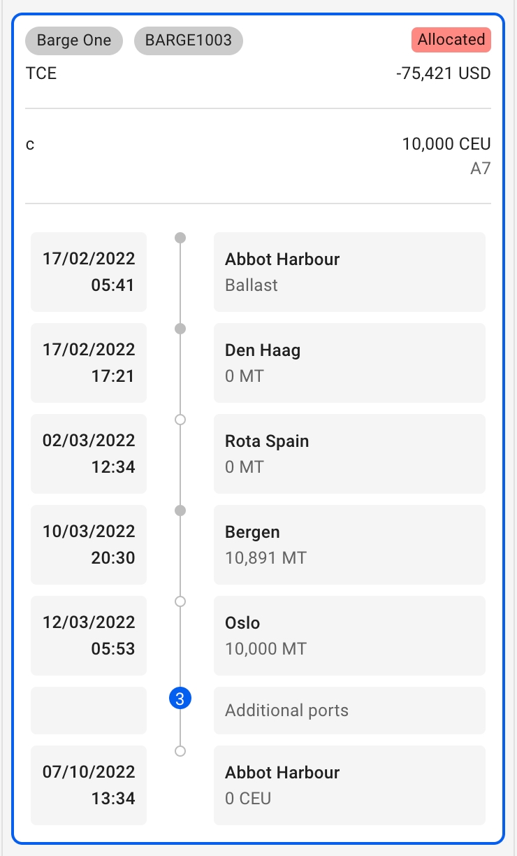 The Allocated Voyages Card also contains a detailed timeline: