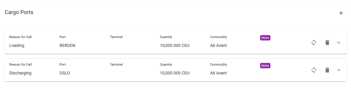 To make it easier to identify which cargoes are relet and connected to a spot cargo, a chip has been added to the section header. See the figures below.