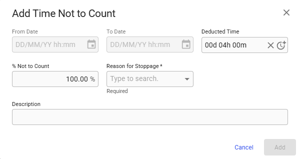 2. Fill in all required fields listed below in the Add Time Not to Count window.