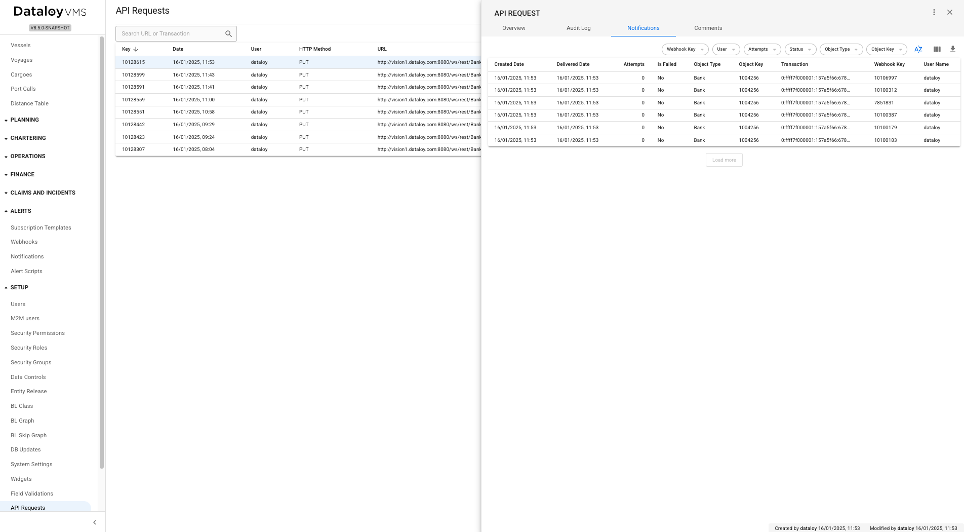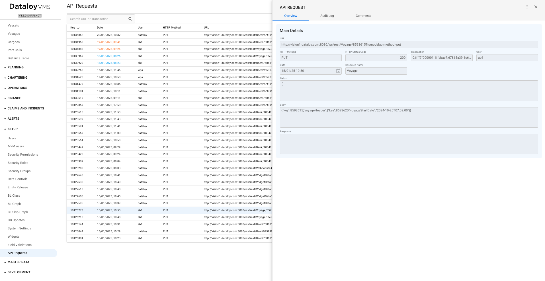 API Requests provides an overview of all API calls made in the system. The page is accessible for administrators from the Setup menu.