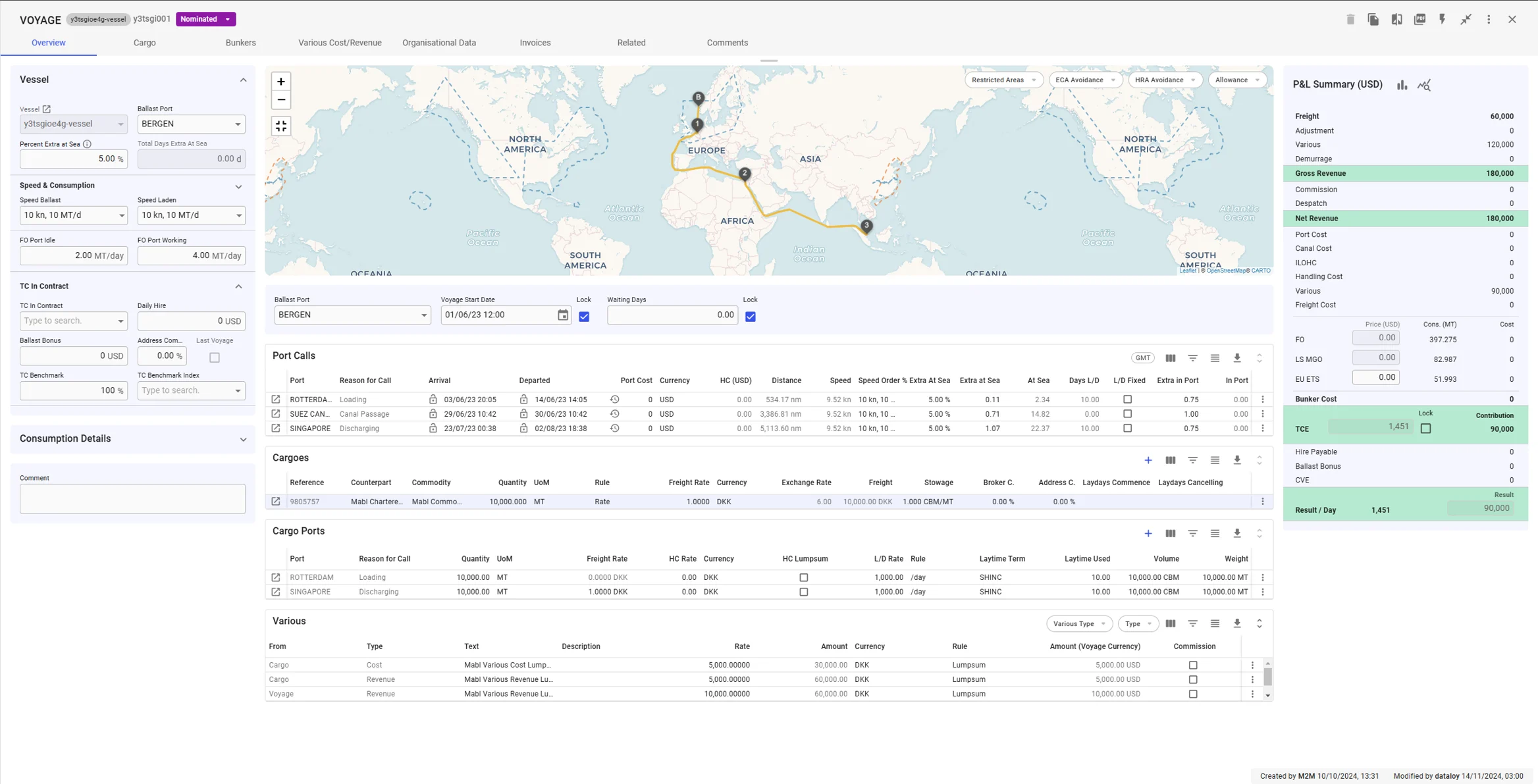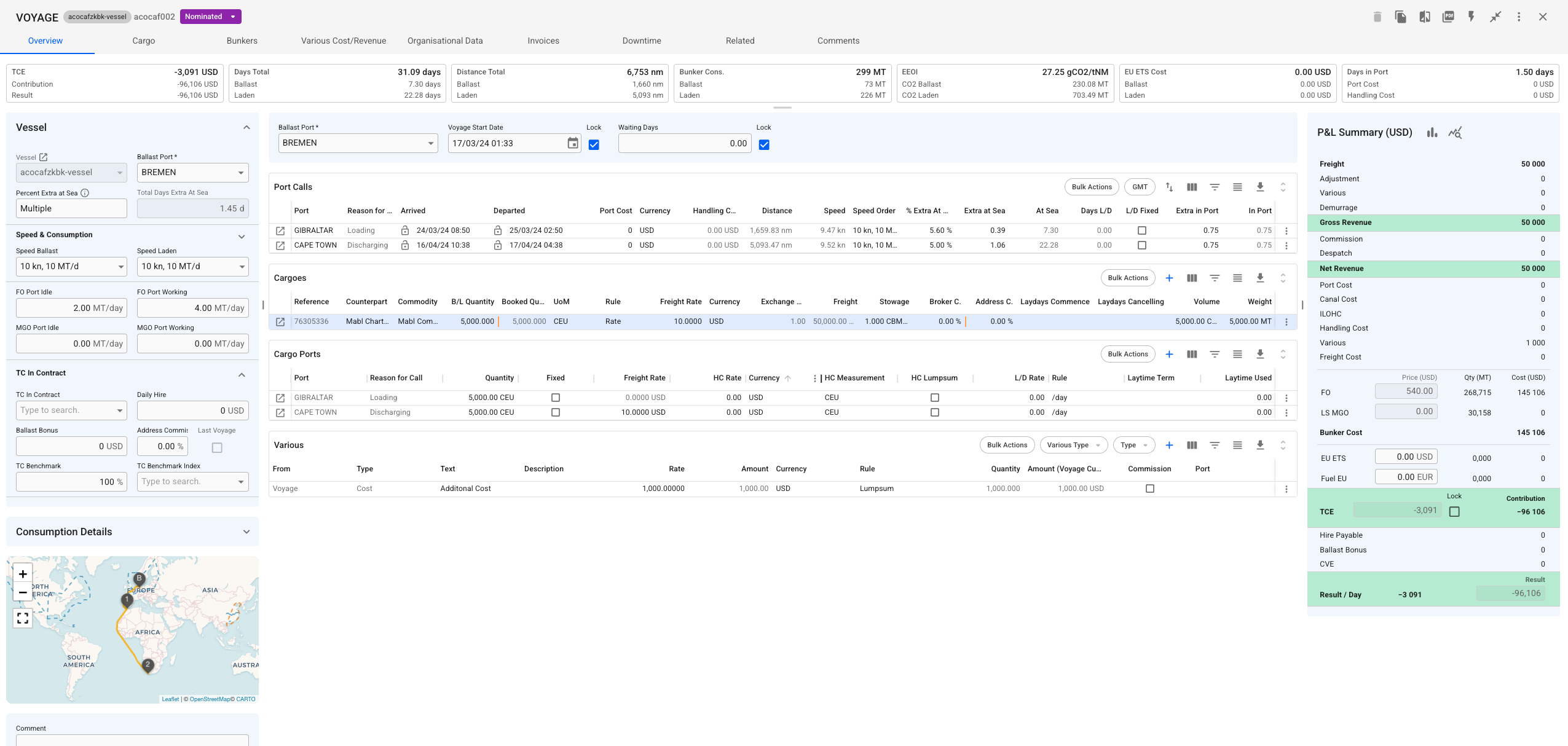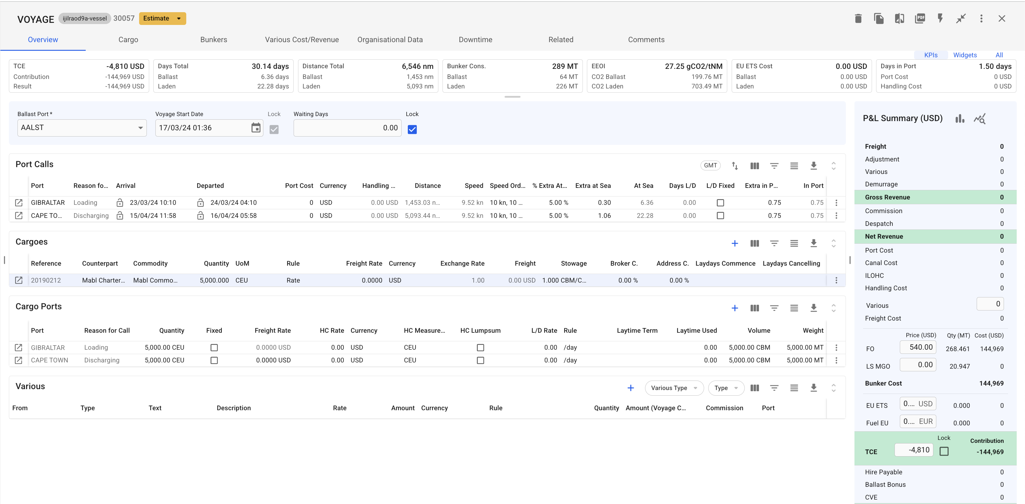 The [*Profit / Loss Section*](https://docs.dataloy.com/release-8.11/voyage-management-system/step-by-step-guides/voyages/maintain-voyages/overview/profit-loss-summary) as well as the V*essel Section* remains the same with the exception of an additional collapsible section for *TC Out Contract*.