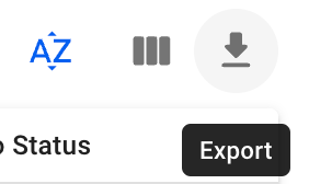 Also in this lit, specifically, you can export the viewed list into an Excel sheet. By clicking on the export icon, you will be given a modal with various options, before exporting. You can read more about it here: Export to Excel Sheet.