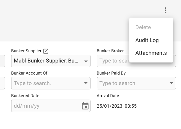 Deleting a bunker order entirely removes the order and all its history. This option is suitable when a bunker order is cancelled, or the entire port call or voyage is cancelled.