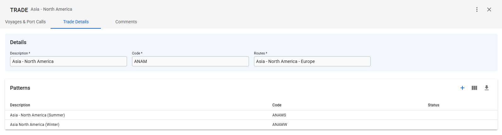 In the details section you can see and edit the Trade's description, code, and which Routes the Trade is in. All of these fields are required, and cannot be empty. The Code field also has to be unique code that is not used by any other Trade.
