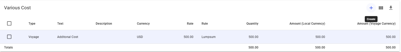 Create New Various Cost/Revenue