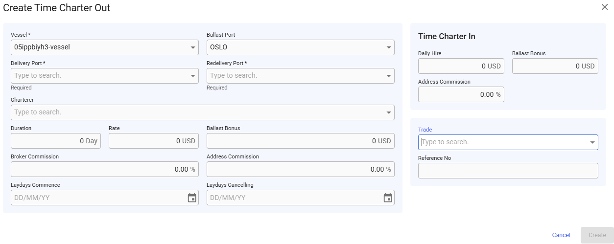 Create Time Charter Out