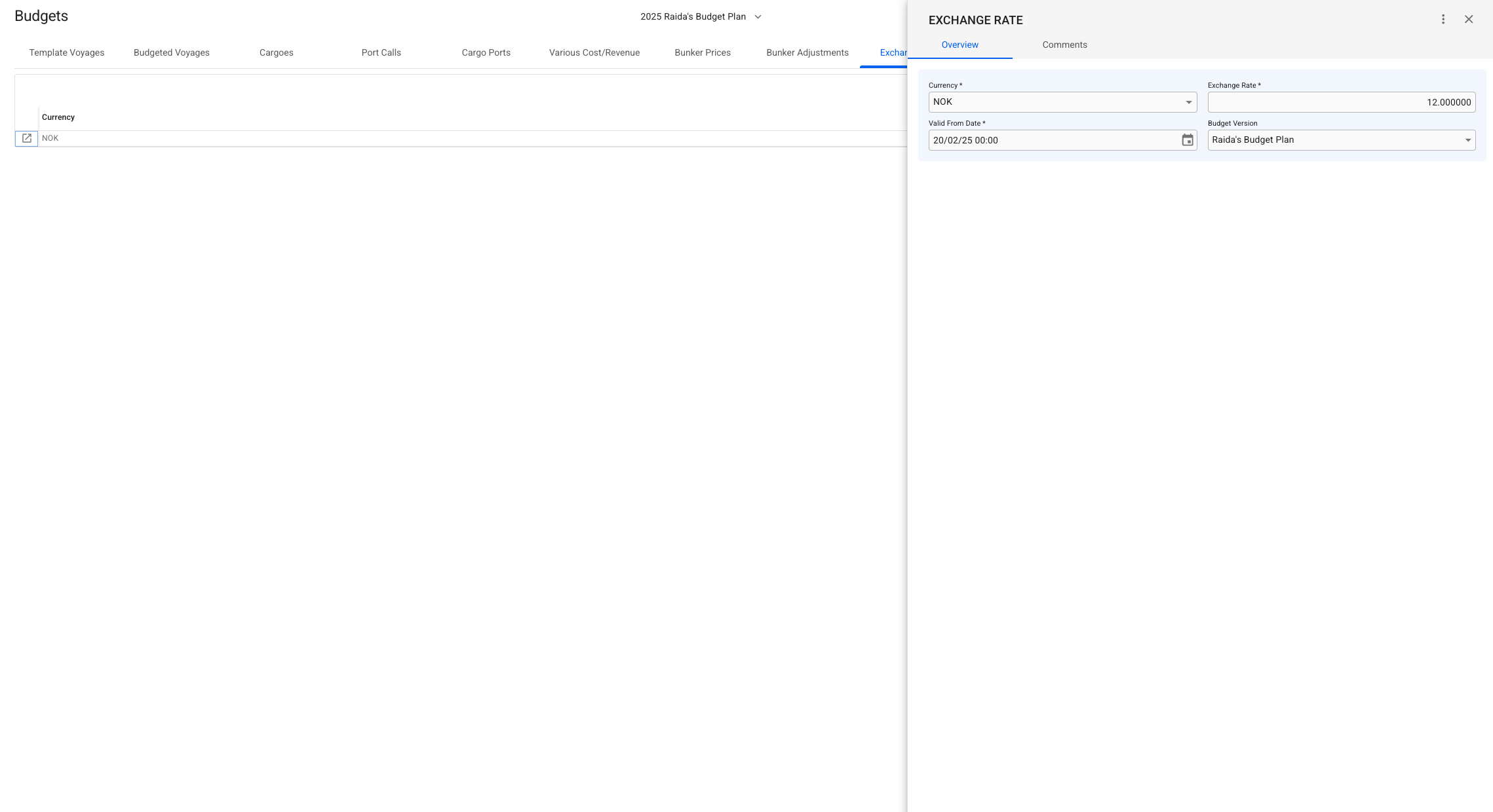 By clicking the ![](https://content.gitbook.com/content/2T7Gc4ttHTe4ZqzL2FOj/blobs/TTwak7vNaLkD6b3ZzuBY/image.png)-icon in the left-most column, you will be able to *open* up the Exchange Rate drawer for that specific row. From the below view, you can edit the selected exchange rate: