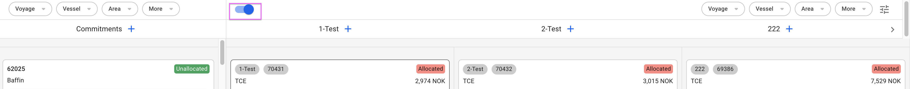 By turning the toggle off, you will be able to hide the Voyage Commitments, or Cargo Commitments, making the allocated sections for voyages and cargoes the full view.&#x20;