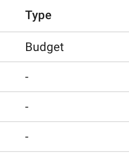 In the *Type* column, you will immediately be able to detect whether a scenario is of type budget or a non-budget (' - '):
