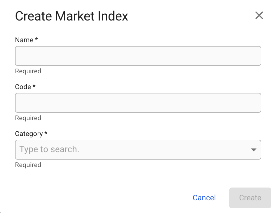 <figure><img src="https://content.gitbook.com/content/uZ9lzqgHX4JL1Df67xog/blobs/KZNdV7jSArZwjaGX0gxN/image.png" alt="" width="375"><figcaption><p>Create Market Index modal</p></figcaption></figure>