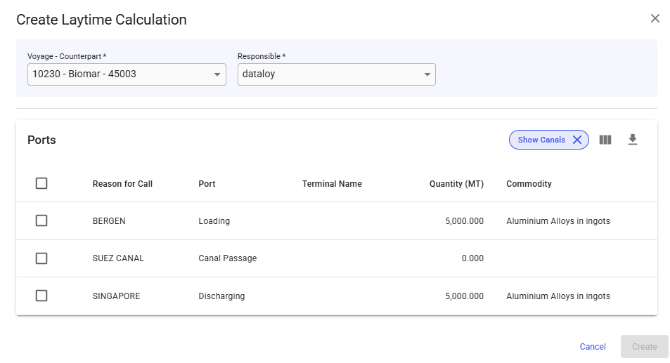 ## Creating a Canal Port Laytime Calculation