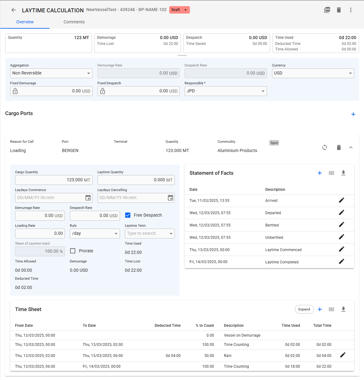 2. Expand the Laytime Calculations to access the Cargo Port Panel List.