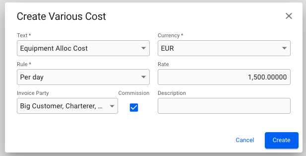The Various Cost/Revenue tab allows you to create and manage Variouses connected to the Downtime.