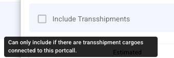 When there are no transshipment cargo ports on the connected port call, this checkbox will be disabled with a helper text, as follows: