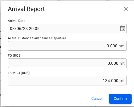 If the registered date is in the past, the arrival date of the port call will be locked. Registered ROBs will also be locked as Arrival ROBs.