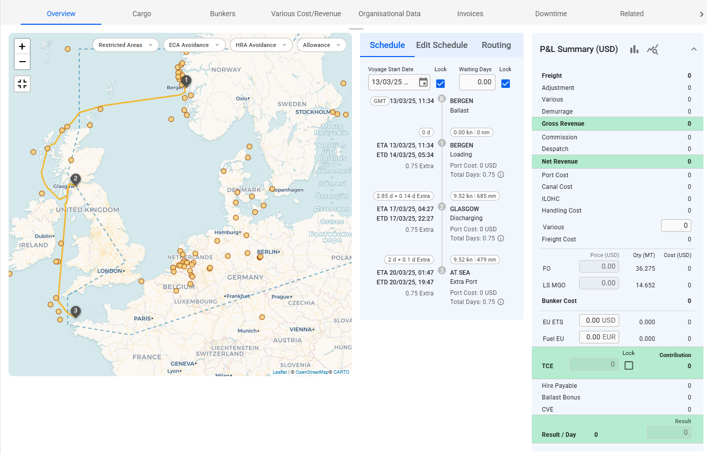 If the ballast port is changed from *'At Sea'* to a another port, the latitude and longitude fields will disappear, and the voyage will automatically update to reflect the new port’s coordinates.