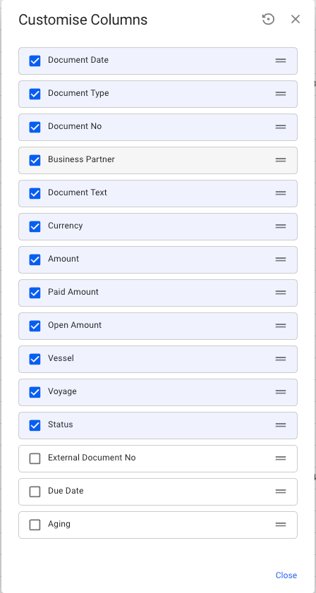 Due to the extensive amount of data being displayed, some columns are hidden by default to prevent visual clutter. If you wish to see the following columns, you can turn them on in the customise columns menu.