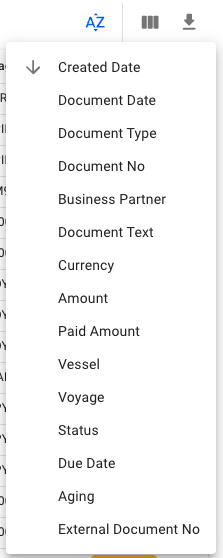 By clicking the -icon you will see the sorting options available. By default the list is sorted by created date in descending order.