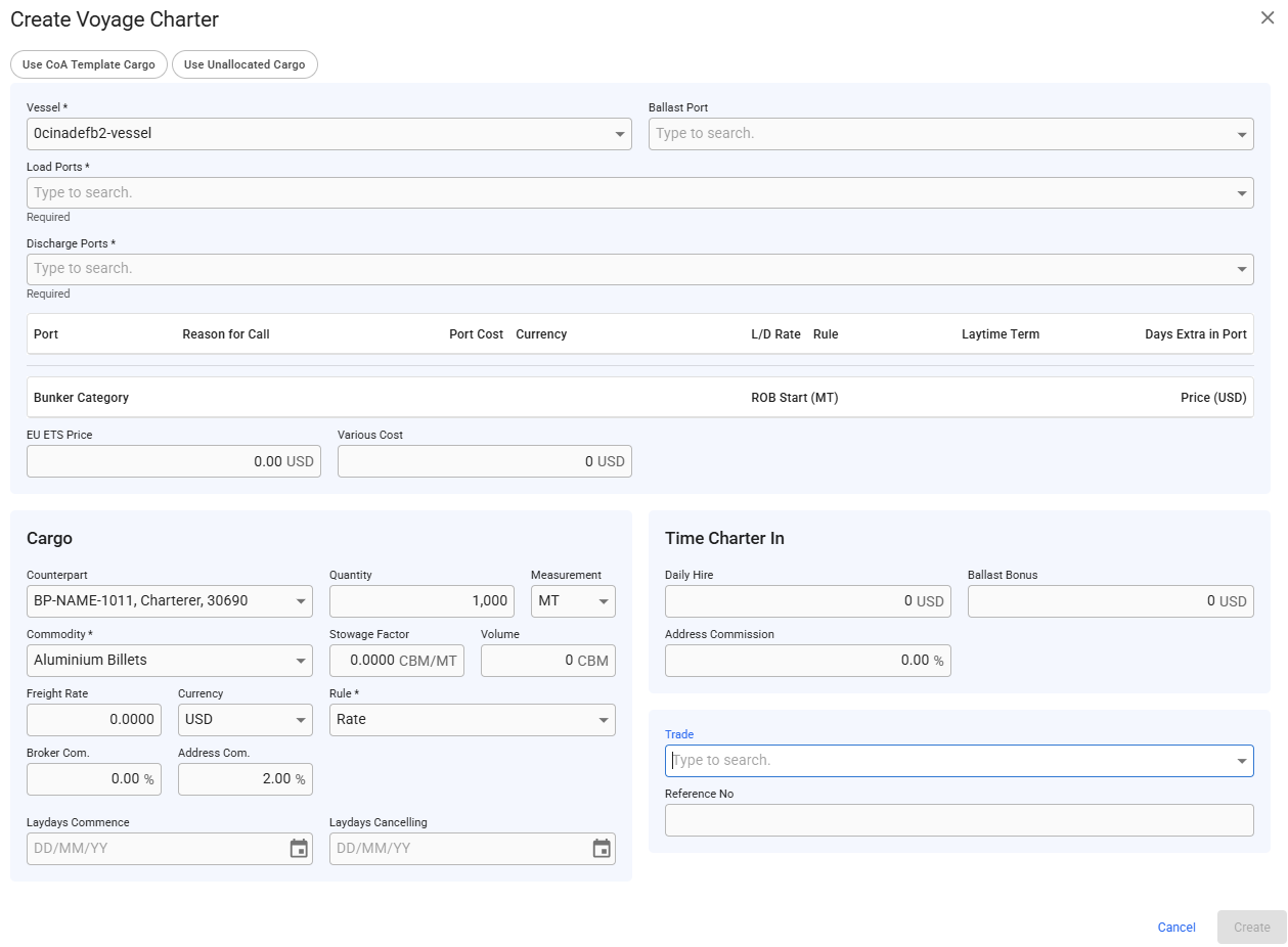 Create Voyage Charter & Create Template Voyage