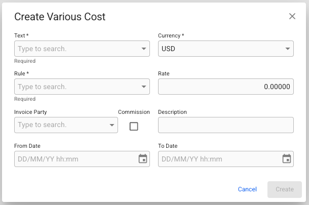 Create New Various Cost/Revenue