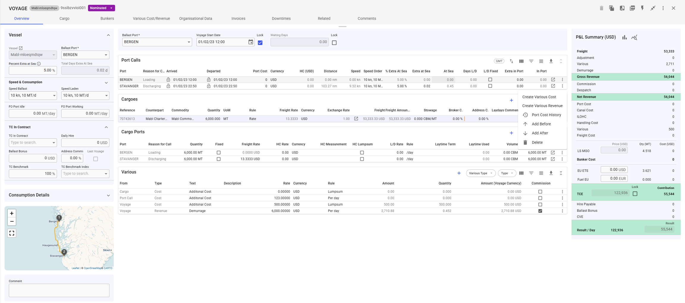 Edit Various Cost/Revenue